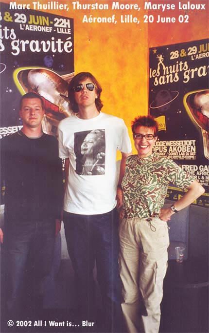 I got into Blur in 1996 only. Until then, I had focussed my interests on American culture, that is American movies, American music, the American language... so as to keep my American English consistent... (remember, I'm an English teacher). In the mid-'90s, I started getting fed up with most of the American music I was hearing (dance, rap, ...) and began getting interested in those 2 English bands the media kept telling us about but which I had never really paid attention to. So I decided I should listen to their albums and borrowed them from one of my students. I listened to The Great Escape and also to Definitely Maybe within a couple of days. I clicked with Blur right away and was astounded by the diversity of their material. Though I liked the way most of the early Oasis tracks rocked, I was charmed by Blur's romantic tunes, amused by their poppy melodies, stunned by their punk-rock songs, attracted by Graham's guitar noises and thrilled by Damon's voice. Then I thought: 'I wonder what these guys look like!', had a look at the back of The Great Escape CD, saw the 4 boys and thought: 'Naa... That can't be them! They can't be that ugly!' The following week, I was lent Showtime and I discovered the band live ... and their lovely faces! I found Blur great to watch on stage and Damon very nice and close to his audience. My attraction to Blur was growing! Very soon I listened to Live At The Budokan, Parklife, Modern Life Is Rubbish and Leisure and started really regretting that I hadn't got to know this band from the start of their career! Gee! What a shame! I started buying their albums and singles like mad to make up for lost time and spent hours visiting the Blur-related websites.